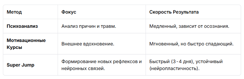 Такая скорость возможна, потому что 8 инструментов Super Jump — это не случайный набор упражнений, а целенаправленное воздействие на ключевые нейрохимические и поведенческие процессы, которые отвечают за выгорание и счастье.